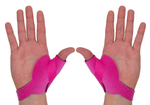 When hand sizes fall outside the standard sizes provided, you may call or choose the custom options when ordering. To order a custom size we will need measurements A, B & F. Select or specify whether you need a longer strap, larger thumb piece or added reinforcement at the web space. Custom cut longer, larger supinator straps are also available.