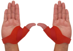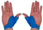 If after trying the on the splint, the splint strap and velcro protrude beyond the thumb, cut strap and/or hook tape to fit the hand.