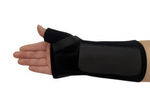 The Allyson Splint is a custom orthosis used to splint the wrist and hand. It is sewn from the same washable, 1.5mm nylon-covered neoprene as our thumb splints and supinator straps. The strapping system and design of the Allyson hand splint counters ulnar deviation and provide support at the wrist and thumb. The pocket of the palm side holds a removable, molded plastic stay to support wrist extension.